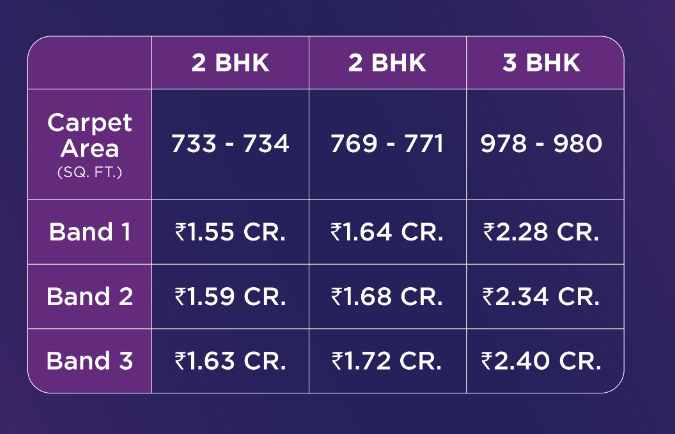3 BHK – 980 Rera Carpet : Rs 2.28 Cr++