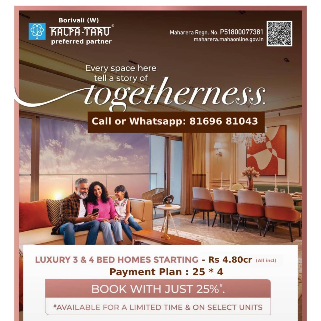 Luxurious Spacious 2BHK, 3BHK, 4BHK and Jodi Flat at Kalpataru Advay – Borivali west