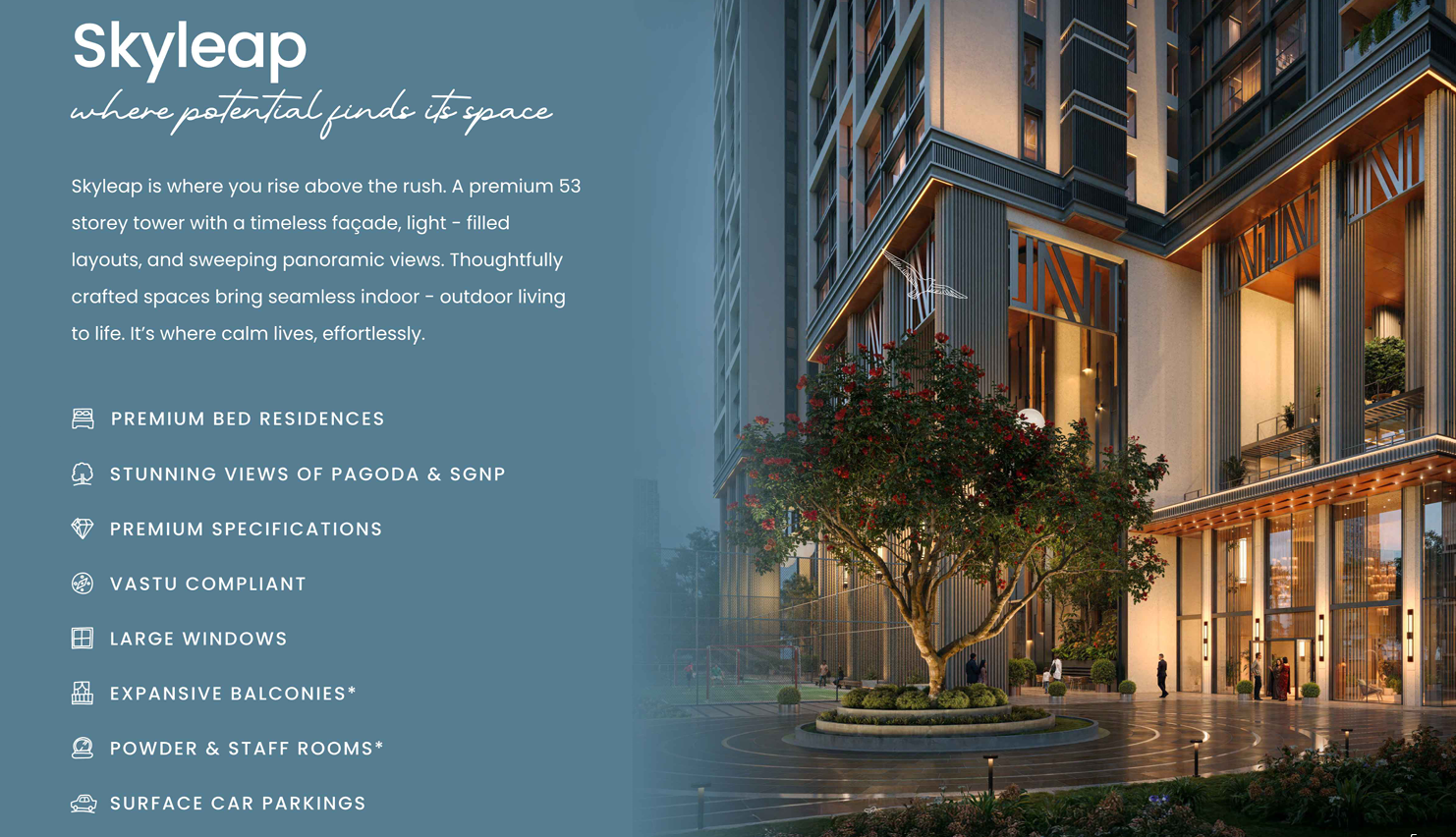 53-storey high-rise tower, Skyleap offers breathtaking views, spacious layouts, and a curated luxury lifestyle.